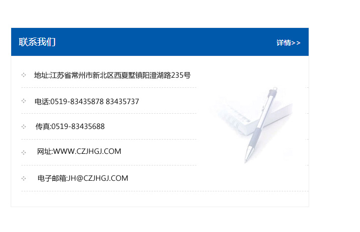 傳真:0519-83435688    郵編:213135    網址:WWW.czjhgj_com.myhkzdh.com    電子郵箱:JH@czjhgj_com.myhkzdh.com